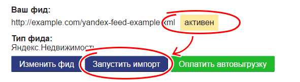 Если Ваш фид уже прошел модерацию и рядом со ссылкой на фид вы видите надпись "активен", то можно запускать выгрузку вручную. Ниже расположена кнопка "Запустить импорт". Нажмите на нее, чтобы добавить задание в очередь.